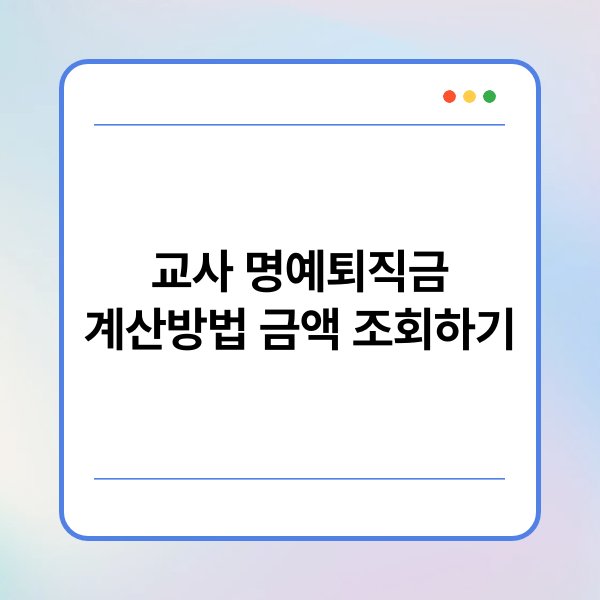 ✅교사 명예퇴직금은 근무 기간과 급여에 따라 결정됩니다