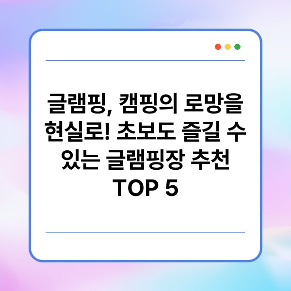 최근 글램핑이 캠핑의 새로운 트렌드로 자리 잡으며 많은 이들의 관심을 받고 있습니다. 자연 속에서 편안하게 휴식을 취할 수 있는 글램핑은 초보자도 쉽게 즐길 수 있는 매력적인 옵션입니다. 이번 글에서는 초보자에게 적합한 글램핑장 5곳을 소개하고, 각 장소의 특징과 장점을 상세히 설명하겠습니다. 자연과의 조화를 이루는 글램핑의 매력을 통해 캠핑의 로망을 현실로 만들어보시기 바랍니다.