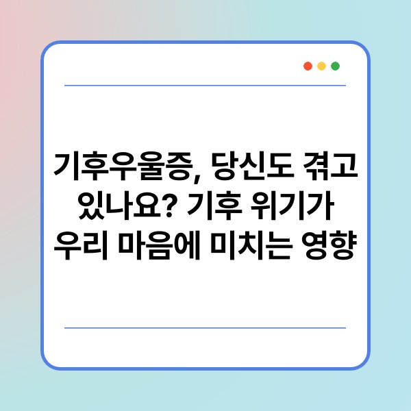 기후 위기가 전 세계적으로 심각한 문제로 대두되면서, 우리의 정신 건강에도 영향을 미치고 있습니다. 이러한 현상을 기후우울증이라고 하며, 이는 기후 변화로 인한 불안감과 우울감을 포함합니다. 많은 사람들이 환경 문제에 대한 우려로 심리적 스트레스를 경험하고 있으며, 이는 단순한 개인의 문제가 아닌 사회 전반에 영향을 미칠 수 있습니다. 본문에서는 기후우울증의 정의와 원인, 증상 및 대처 방법에 대해 자세히 설명하겠습니다.
