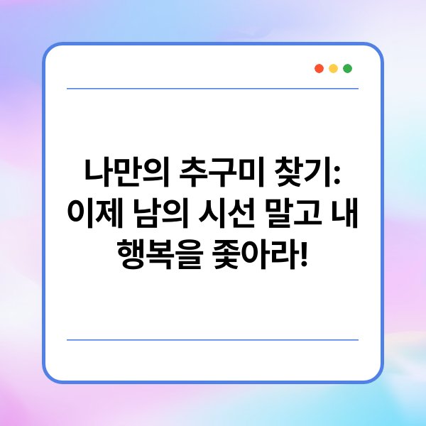 최근 많은 사람들이 남의 시선에서 벗어나 자신만의 행복을 찾는 데 관심을 두고 있습니다. '나만의 추구미'를 찾는 과정은 개인의 자아를 이해하고, 진정한 행복을 느끼는 데 필수적입니다. 본 글에서는 개인적인 행복을 추구하는 방법과 그 중요성에 대해 설명합니다. 또한, 다양한 관점에서 나만의 추구미를 찾기 위한 실질적인 팁을 제공합니다. 이를 통해 독자들이 자신의 행복을 보다 명확히 인식할 수 있도록 돕고자 합니다.
