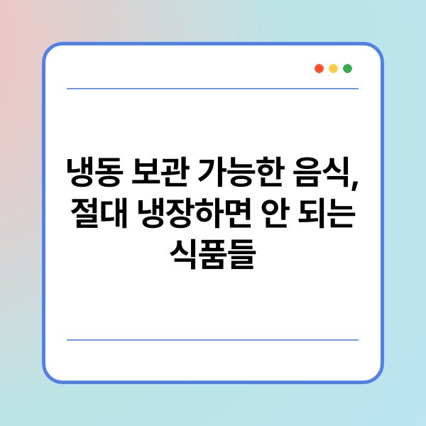 냉동 보관이 가능한 음식과 절대 냉장하면 안 되는 식품에 대한 이해는 식품 안전과 음식 품질 유지에 매우 중요합니다. 많은 사람들이 냉동과 냉장 보관을 혼동하는 경우가 많으며, 이는 식품의 맛과 영양에 영향을 미칠 수 있습니다. 본 글에서는 냉동 보관이 가능한 음식과 함께 절대 냉장하면 안 되는 식품 목록을 소개하여 독자의 식품 보관 지식을 확장하고자 합니다. 이 정보를 통해 안전하고 건강한 식생활을 유지하는 데 도움이 될 것입니다.