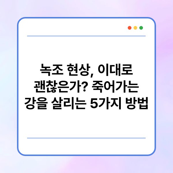 최근 녹조 현상이 심각한 문제로 대두되고 있습니다. 이 현상은 강과 호수의 수질을 악화시키며 생태계에 큰 피해를 줍니다. 이에 따라 죽어가는 강을 살리기 위한 다양한 방법이 논의되고 있습니다. 본문에서는 녹조 현상의 원인과 그 해결책으로 제시되는 5가지 방법에 대해 상세히 설명하겠습니다. 이를 통해 관련 정보를 이해하고, 문제 해결을 위한 노력이 필요함을 강조하고자 합니다.