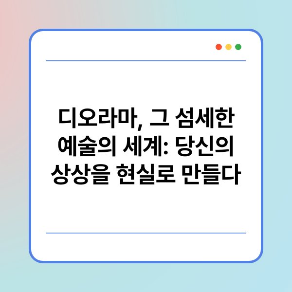 디오라마는 미니어처 세상을 창조하는 독특한 예술 형태입니다. 이 예술의 매력은 작은 공간 속에 방대한 상상을 담아낼 수 있다는 점에 있습니다. 디오라마 제작은 단순한 취미 활동을 넘어, 예술적 표현과 창의력을 발휘할 수 있는 기회를 제공합니다. 본문에서는 디오라마의 역사, 제작 과정, 활용 분야 등을 통해 이 섬세한 예술의 세계를 탐구하겠습니다.