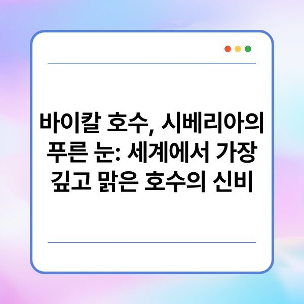바이칼 호수는 시베리아의 푸른 눈으로 불리며, 세계에서 가장 깊고 맑은 호수로 알려져 있습니다. 이 호수는 독특한 생태계와 경관으로 많은 이들의 관심을 끌고 있습니다. 본문에서는 바이칼 호수의 특징, 생태계, 역사적 중요성, 관광 명소, 그리고 보전 노력에 대해 자세히 소개할 것입니다. 바이칼 호수에 대한 이해는 자연과 환경 보호의 필요성을 일깨우는 데 중요한 역할을 할 수 있습니다. 이러한 내용을 통해 독자는 바이칼 호수의 신비를 좀 더 깊이 이해할 수 있을 것입니다.