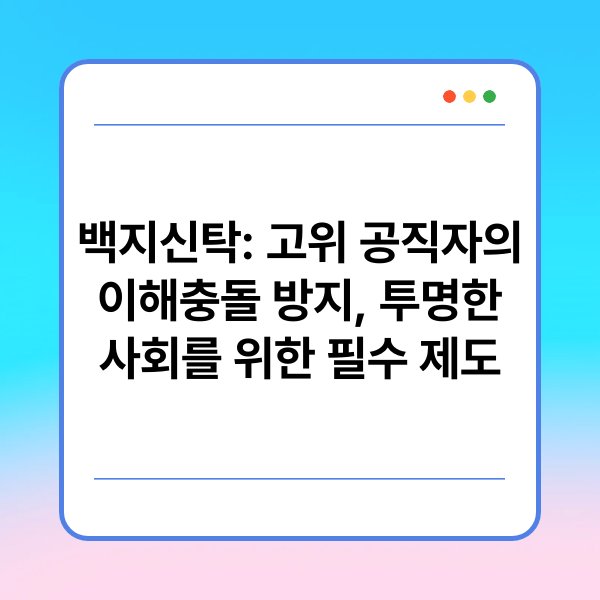 고위 공직자의 이해충돌 방지를 위한 제도로 백지신탁이 주목받고 있습니다. 이는 공직자가 개인적인 이익과 공적 의무 간의 충돌을 예방하기 위한 중요한 수단입니다. 백지신탁 제도는 고위 공직자가 재산을 제3자에게 맡기고 관리하게 하여 투명한 사회를 구현하는 데 기여합니다. 본 글에서는 백지신탁의 필요성과 기능, 그리고 관련 법령 등에 대해 자세히 설명하겠습니다.