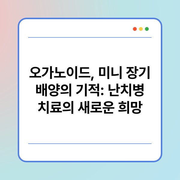 최근 오가노이드 기술이 발전하면서 미니 장기 배양의 가능성이 주목받고 있습니다. 이 기술은 난치병 치료에 있어 새로운 희망으로 떠오르고 있으며, 다양한 질병 연구에 활용되고 있습니다. 오가노이드는 인체의 장기 구조를 모사한 조직으로, 이를 통해 실험실에서 질병 메커니즘을 이해하고 신약 개발에 기여할 수 있습니다. 본문에서는 오가노이드의 정의와 활용 사례, 난치병 치료에서의 기대 효과를 정리하였습니다. 이를 통해 오가노이드 기술의 중요성을 확인할 수 있습니다.