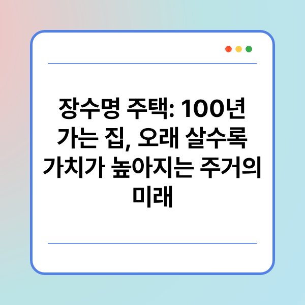 A1: 장수명 주택은 100년 이상 사용할 수 있도록 설계된 주택을 의미합니다. 내구성과 지속 가능성을 중시합니다.