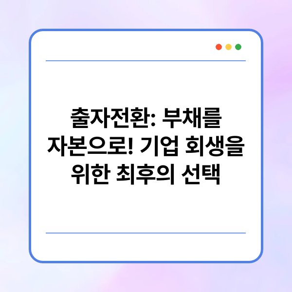 A1: 출자전환은 기업의 부채를 자본으로 전환하는 과정으로, 주로 재정적 어려움에 처한 기업이 진행합니다.