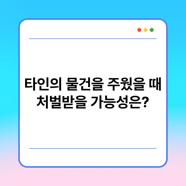 타인의 물건을 주웠을 때, 처벌받을 가능성에 대한 관심이 높아지고 있습니다. 일상생활에서 주운 물건이 타인의 소유물일 경우, 법적 책임이 발생할 수 있습니다. 본 글에서는 타인의 물건을 주웠을 때 어떤 법적 기준이 적용되는지, 그리고 처벌의 가능성에 대해 설명하겠습니다. 이와 관련된 법령과 사례를 통해 이해를 돕고자 합니다. 법적 문제에 대한 기본적인 지식을 갖추는 것이 중요합니다.