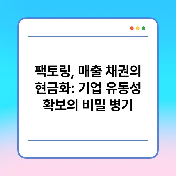 A4: 팩토링을 통해 확보한 자금은 운영 자금, 재고 구매, 투자 등 다양한 용도로 사용 가능합니다.
