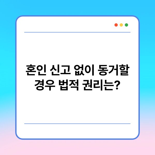 A1: 혼인 신고 없이 동거하는 경우 법적 보호를 제한적으로 받을 수 있으며, 재산권 및 상속권에서 불이익을 받을 수 있습니다.