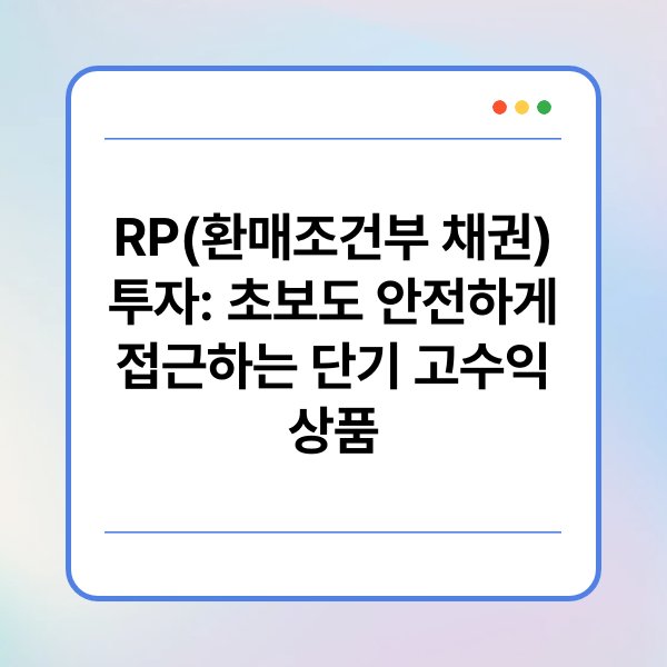 | RP의 기본 개념 | RP는 환매조건부 채권으로, 고정 수익을 기대할 수 있는 단기 금융상품입니다. |